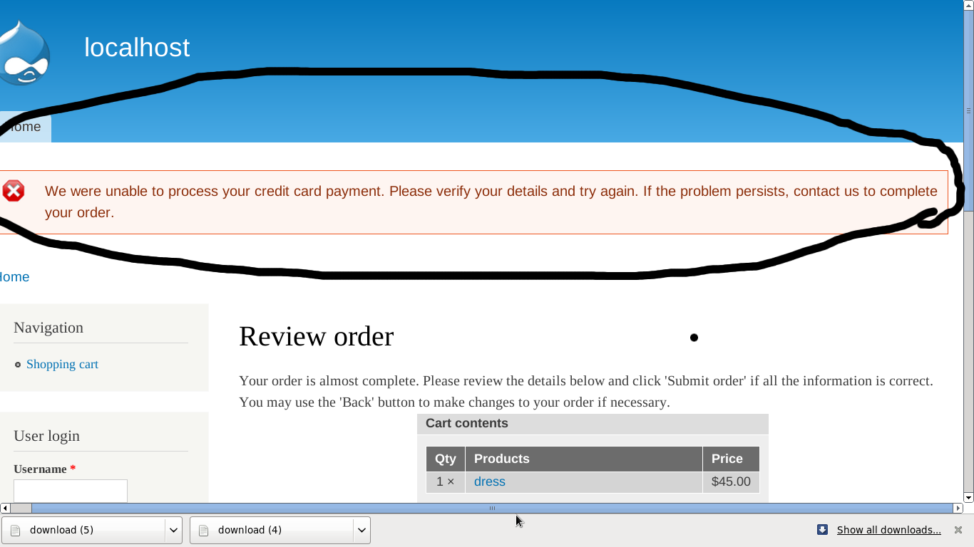 what payment gateway are you using? -Don- On 6/29/2012 7:51 AM, Selvaraj Chnnasamy wrote:Dear all when i submit order so show this error We were unable to process your credit card payment. Please verify your details and try again. If the problem persists, contact us to complete your order Please see attached screen shot Any idea? Regards Selvaraj.C-- [ Drupal support list | http://lists.drupal.org/ ]