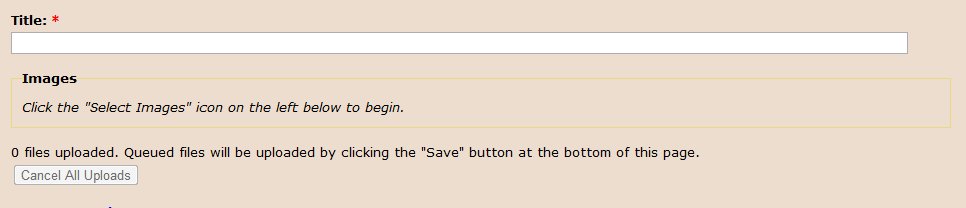 I'm a Drupal newbie and trying hard to learn things. I am working on a site that tries to implement uploading images by bulk. I've done few research an able to pick one..image_fupload module. However, when I finished creating a new content type and try to create it I could not see the icon. The uploader button doesn't showed up. Please see the attached file for reference. I tried to reconfigure image fupload but I got the same result in trying to create a content. I don't know what went wrong. Please, your help is highly appreciated.
