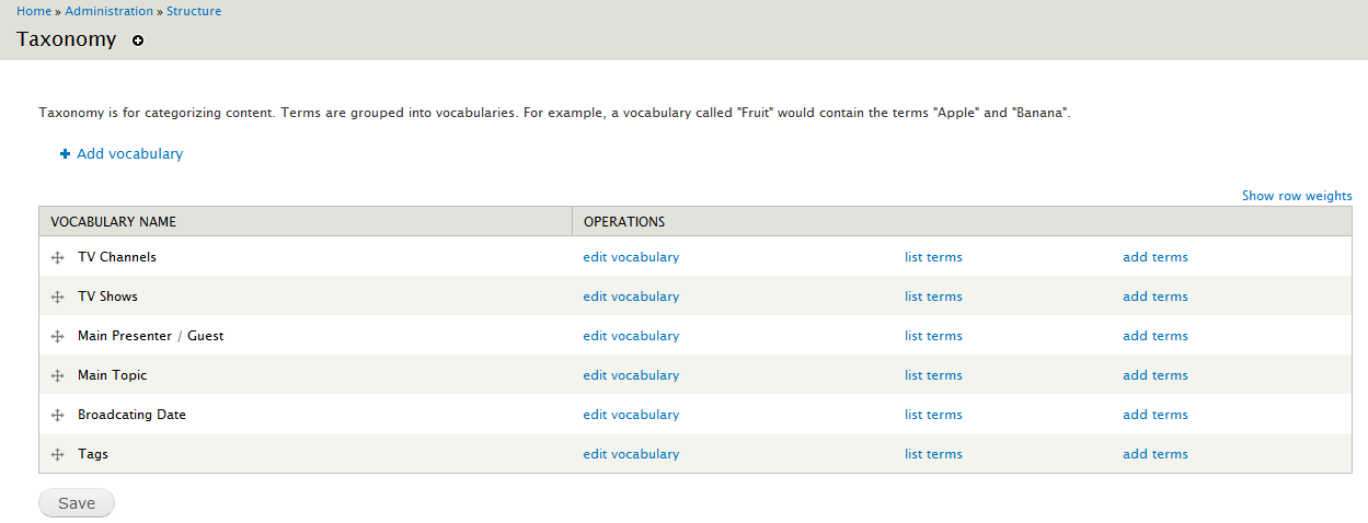 Also there is a very very important thing I did not realized till I started to build the structure of the taxonomies. I've add a vocabulary for TV Channels and TV Shows and Main Presenter / Guest ...etc and attached some examples as I am working in the test website now and not the main live one.