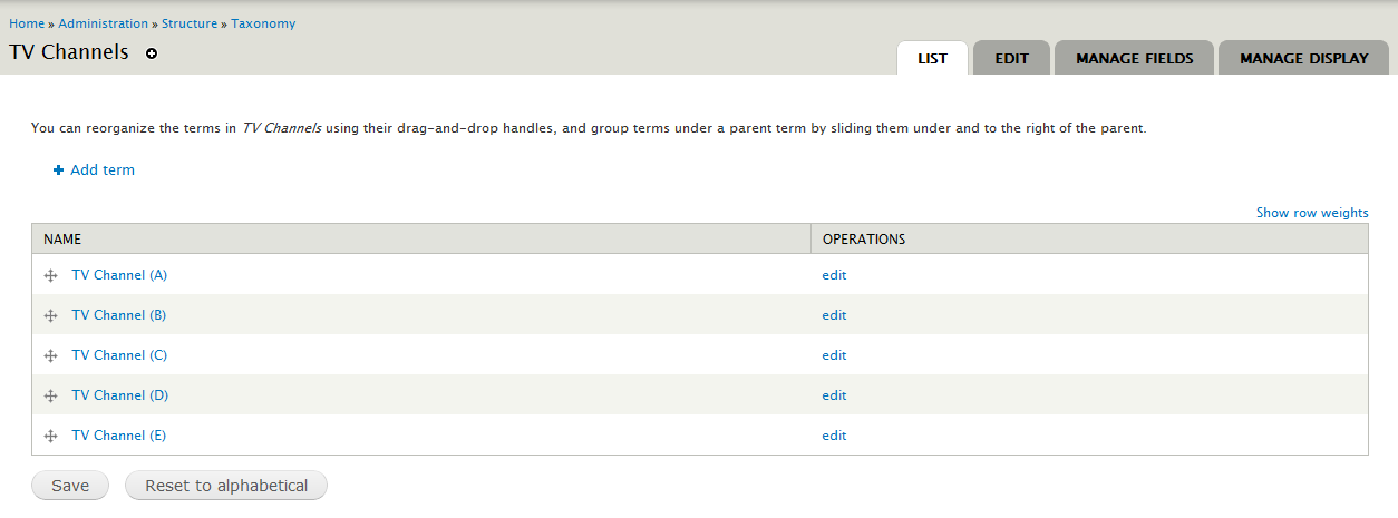 TV Channel: TV Channel (A) http://letsdrupal.com/test/taxonomy/term/1
